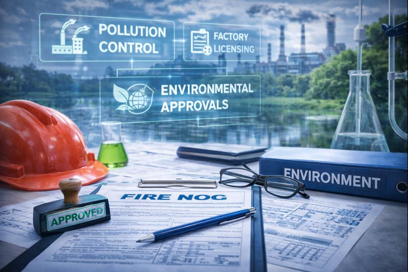 Support for pollution control, factory licenses, and environment-related statutory permissions.