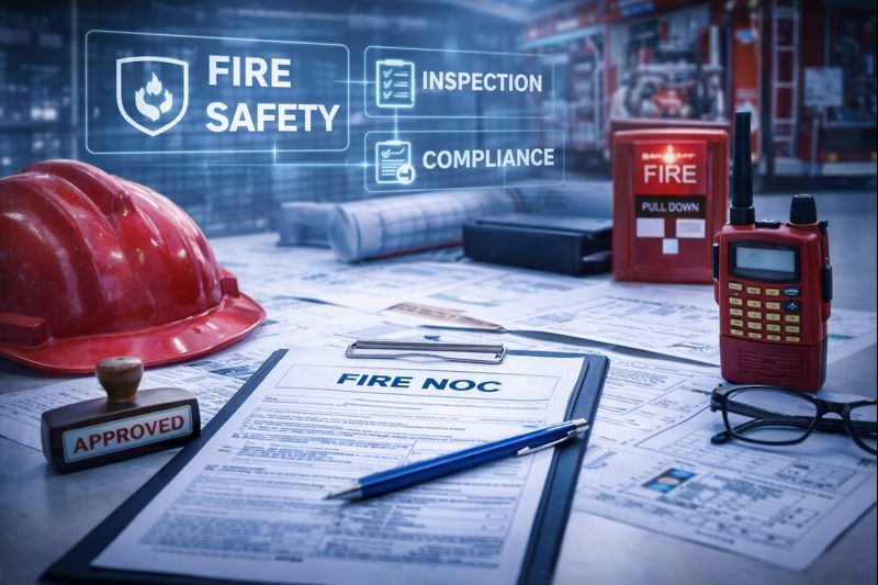 Fire NOC planning, coordination, inspections, and final clearances as per NBC norms.