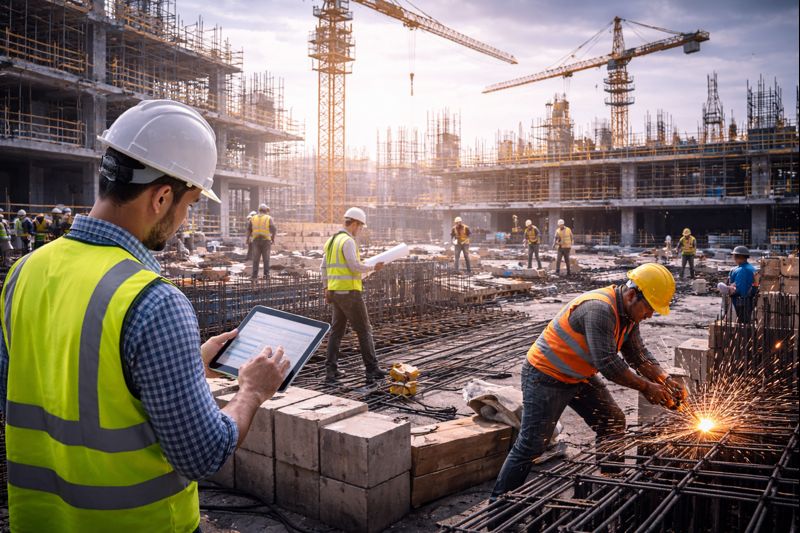 Integrated execution of civil works, structural systems, and MEP services aligned with approved designs and standards.